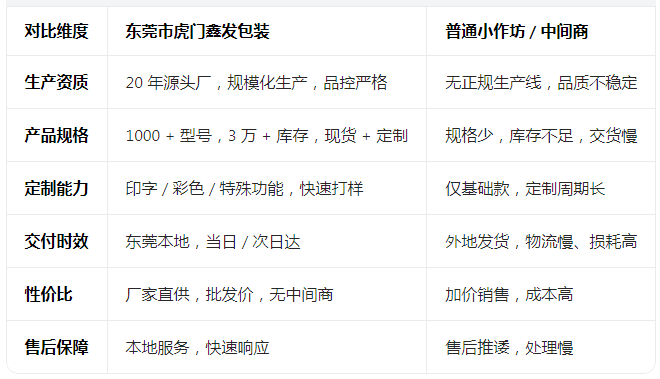 三、鑫发包装 vs 普通供应商:优势一目了然